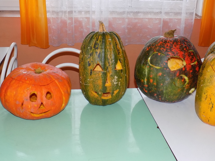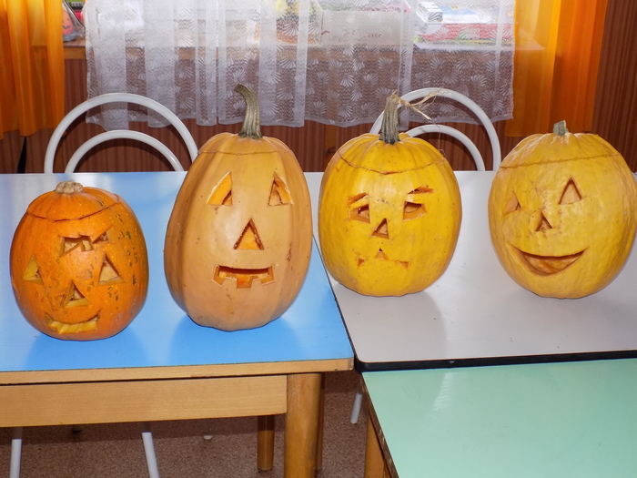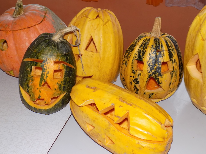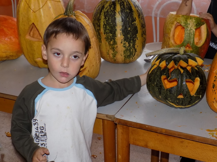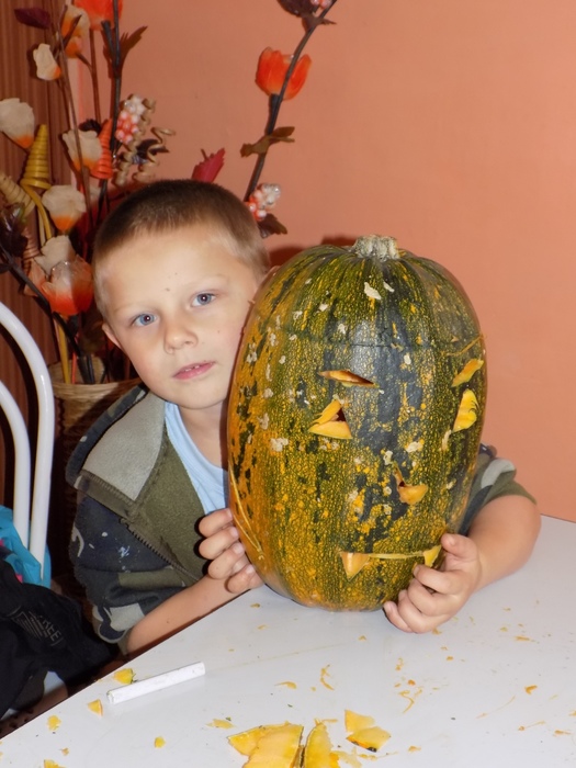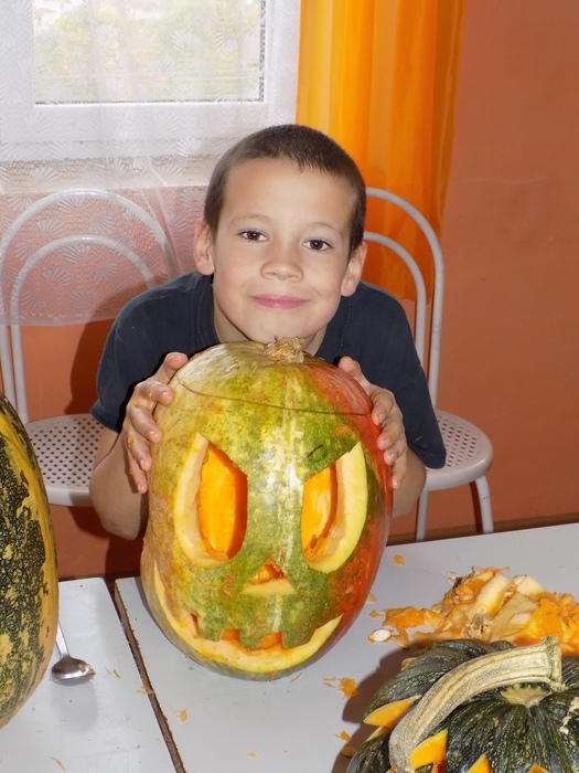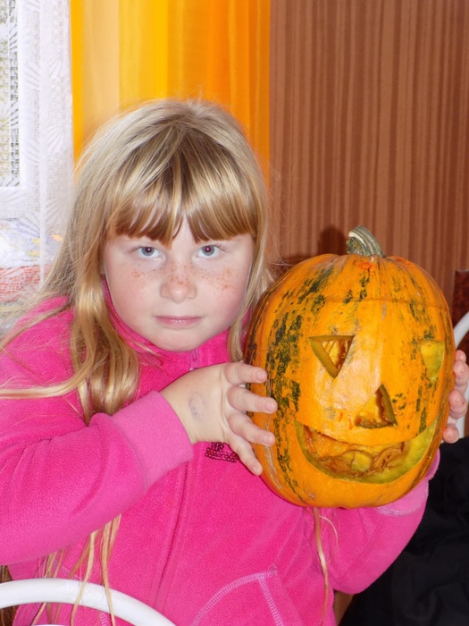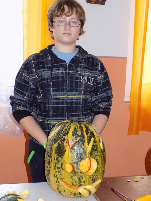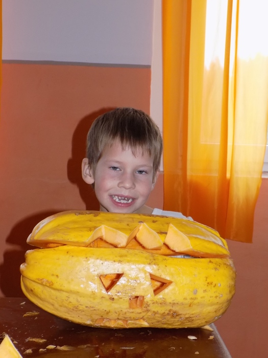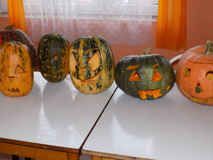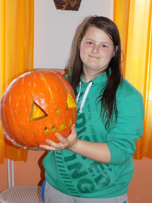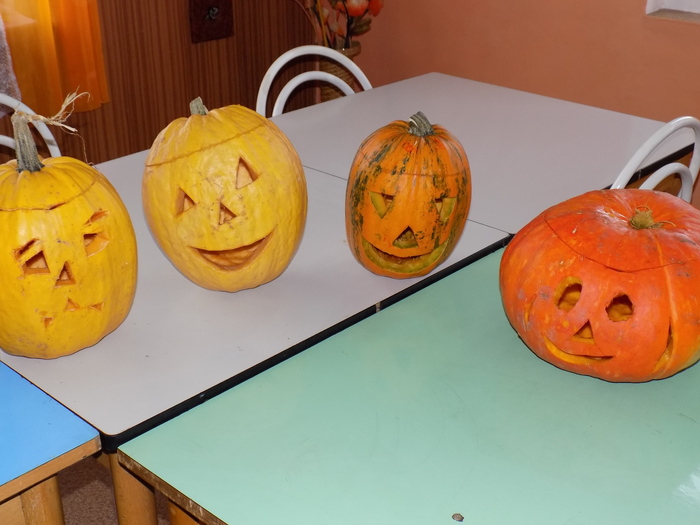 V úterý 28.10.2014 proběhlo v malé zasedací místnosti nad obchodem dlabání dýní. Pro každého byla připravena dýně, ze které si sami vydlabali "strašáka", kterého si v sobotu společně všichni vystaví a rozsvítí. Celkem se zúčastnilo 24 dětí a 7 dospělých.