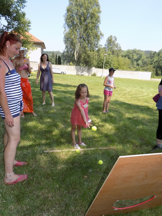 Dne 4.7.2015 uspořádala obec pro děti dětský den na fotbalovém hřišti. Pro děti bylo připraveno 8 disciplín (hod na šaška, opičí dráha, střelba ze vzduchovky, hod na plechovky a další). Kromě toho si ještě mohly nechat udělat tetování nebo obrázek na obličej. Ti odvážnější si mohli zajezdit na terénní čtyřkolce. Pro děti byl také zajištěn program (pirát se soutěžemi).Počasí nám přálo velmi, bylo 35° C, proto jsem s radostí uvítali, že přijeli dobrovolní hasiči z Tuchořic, dětem vytvořili na hřišti dlouhou pěnu a všechny zkropili vodou. Akorát tentokráte odpadlo opékání buřtů (děti si je odnesly studené domu).Vzhledem k velkému vedru byla účast dobrá, přišlo 45 dětí a cca 80 dospělých.