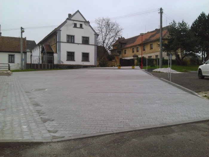 Na konci září byla započala oprava prostranství před místním pohostinstvím. Byl odstraněn starý asfalt, osazeny obrubníky a položena zámková dlažba na ploše 412 m2 a následně vyznačeno stání pro osobní vozidla. Vzniklo tak parkoviště pro 12 osobních vozidel a pro cyklisty byl umístěn betonový stojan pro 5 kol. Akce byla ukončena na konci října, náklady cca 340.tis.Kč, obec hradila akci z vlastních prostředků.