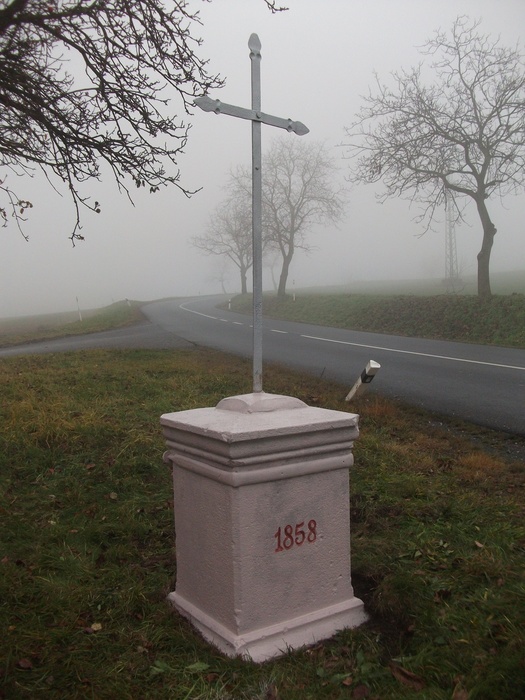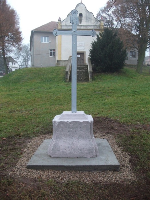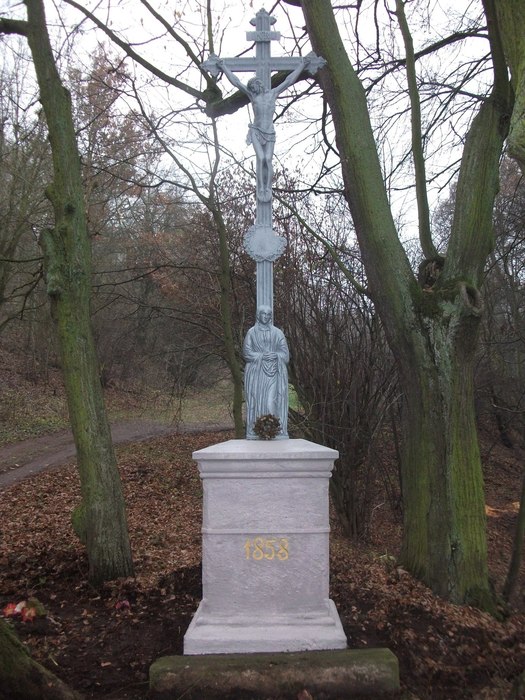 (kříž poničen před cca 10 lety vandaly) byl umístěn malý křížek.
