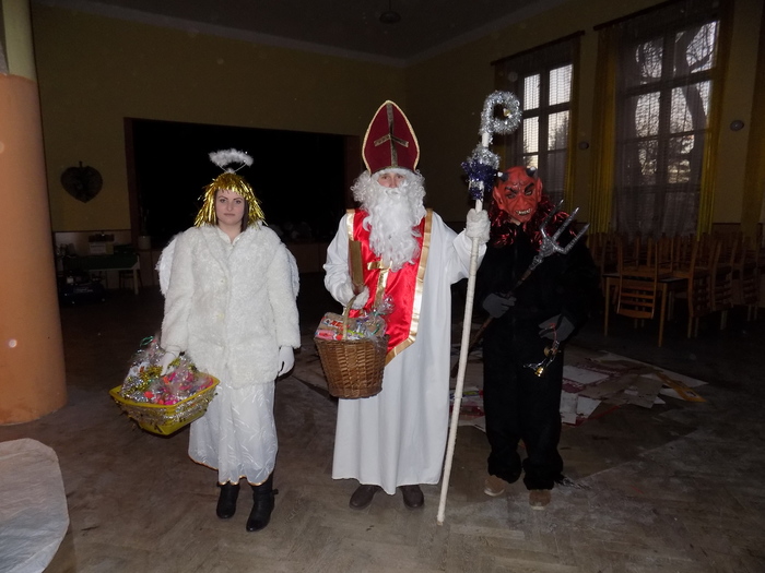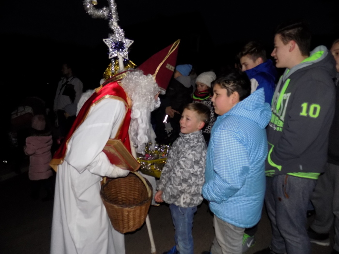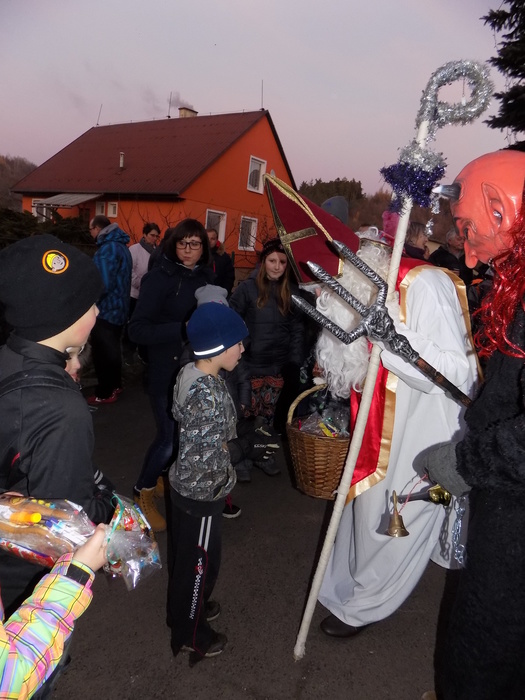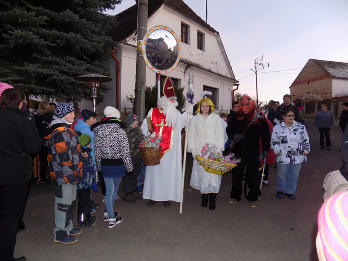 Dne 3.12.2016 jsme poprvé udělali Mikulášskou besídku venku u vánočního stromu proti obchodu. Mikuláš, čert a anděl rozdávali balíčky dětem. Také jsme poprvé rozsvěceli slavnostně strom. Obec zakoupila nové led osvětlení, řetězy na 20 m vysoký strom a hvězdu. Zaměstnanci obce v předstihu vyrobili dřevěný betlém (19 figur), který byl umístěn pod vánoční strom, slavnostně odhalen a osvícen žárovičkami. Po dobu besídky se mohly děti občerstvit čajem a párkem v rohlíku. Dospělí dostali svařák a mohli si zakoupit grilovanou klobásu. K vánoční atmosféře hrály koledy. Přišlo cca 105 lidí a 48 dětí. Akce byla pěkná, líbila se !