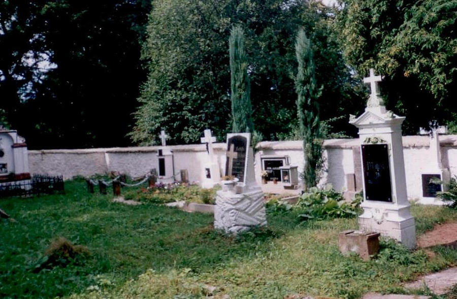 Původní hřbitov se rozkládalv návrší kolem obecního kostela, přímo na návsi ve středu obce.To samozřejmě nemohlo vyhovovat a tak byl kolem r. 1850 zřízen hřbitov nový, při cestě podél Dvorského potoka k trati. Ten je využíván dodnes a čeká ho opět velká rekonstrukce.