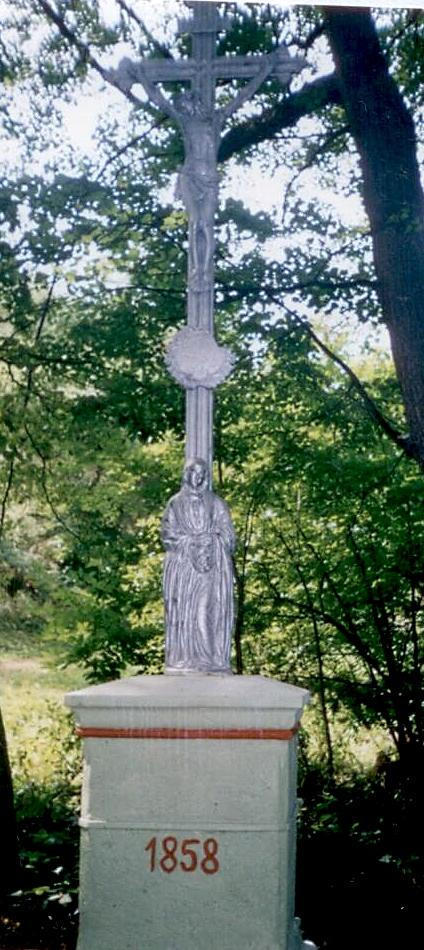 Když pojedete ze Žatce směrem na Rakovník po silnici č. 227, tak u odbočky na obec Velká Černoc, po pravé straně ve směru jízdy, stojí zbytek pomníku - tzv. Želečský kříž. Tento křížek zde byl postaven kolem r. 1882. Toto místo se nazývalo „Fleischbankhügel“ a váže se k němu pověst :