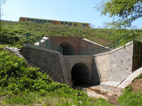 Jedná se o malý viadukt - tunel, který má šíři 1 m. Slouží nejen jako podpěra železniční tratě, ale také jako drenážní stoka pro odvod vody z lesního pozemku přes tunel do strže.