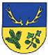Modro - zlatě dělený štít. V modrém poli zlaté parohy. Ve zlatém poli stylizovaná větvička jehličnanu a chmelová větvička se dvěma listy a třemi šišticemi, vše zelené.